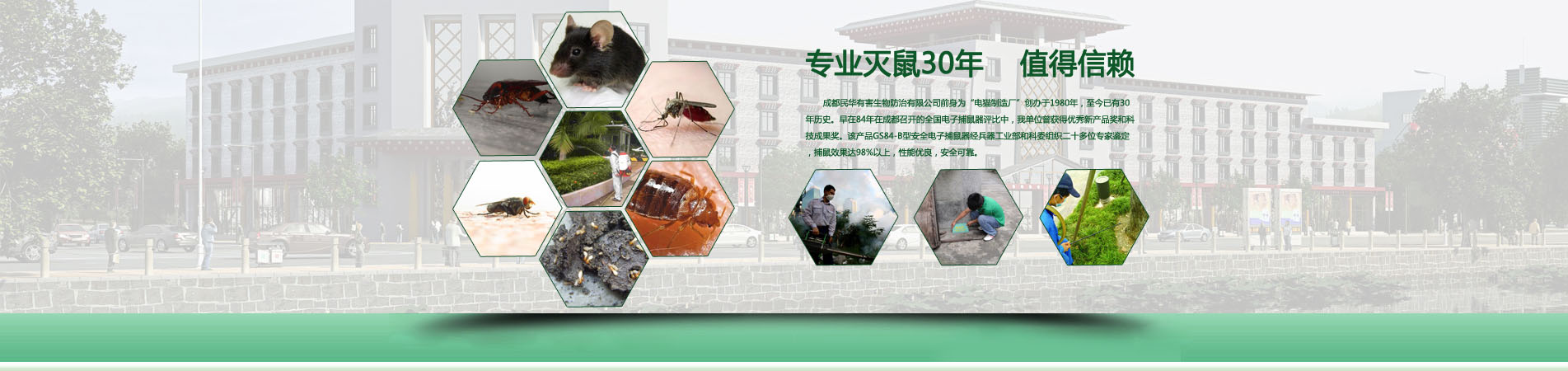 成都民華有害生物防治有限公司前身爲“電貓制造廠”創辦于1980年,至今已有30多年曆史。早在84年在成都召開的全國電子捕鼠器評比中,我單位曾獲得新産品獎和科技成果獎。該産品GS84-B型安全電子捕鼠器經...